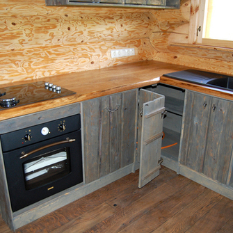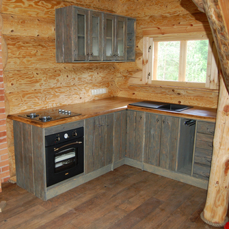 Põhimaterjaliks on sajandivanuste lagunemisele määratud palkhoonete palgid, mida aeg on kujundanud, mis räägivad oma lugu. Me anname neile uue elu ja elupaiga.