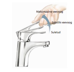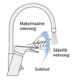 PÜSIV KOKKUHOID saavutatakse segisti eelseadistatud optimaalse veevoolu abil, mis annab vajalikul hulgal vett näiteks nõude- või kätepesuks.