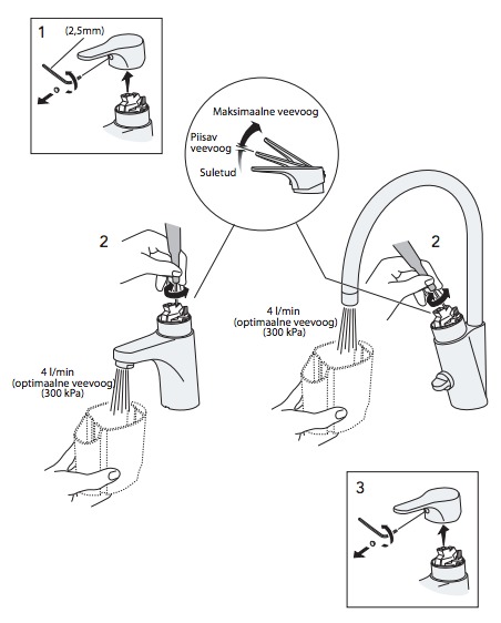 Veevoolu AJUTISEKS SUURENDAMISEKS tuleb segisti kahv tõsta üle piiraja ja hoida seda selles asendis nii kaua, kuni suuremat veehulka vaja on.
