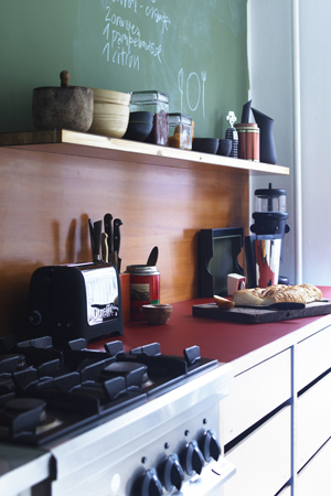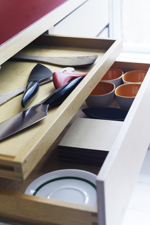 Søren räägib oma ideest lähemalt: „Tegelikult on siin ühendatud eri tüüpi materjalid, mis kõik on pärit eri hoonetest. Konstruktsioonielementideks kasutasime vanadest kappidest lõigatud puitu, mille leidsime likvideeritud vabrikust, kus tehti maailmakuulsat Peter Heeringu kirsilikööri. Ülejäänud materjali saime telemajast. Nii saavad uued köögikapid kaasa oma ajaloo ja põneva tausta, justnagu ristteel, kus saatused kohtuvad!