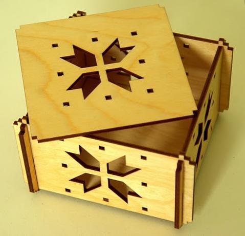 Laegas, mis käib kokku ilma kruvi või liimita. Laeka laius 14cm. Valmistatud vineerist, käsitsi õlitatud linaõliga.