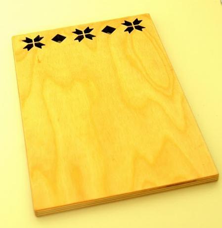 Kaheksakand-mustriga rahvusliku hõnguga lõikelaud, kus tore pühapäeval võileibu valmistada. Valmistatud vineerist, käsitsi õlitatud linaõliga. Lõikelaua mõõdud 20 x 30cm.