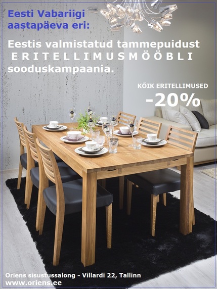 Tammepuidust eritellimusmööbel – 20%.