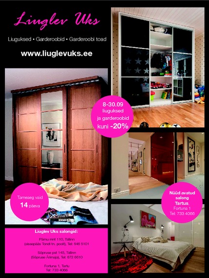 Septembris kõigis Liuglev Uks salongides liuguksed ja garderoobid kuni -20%.
