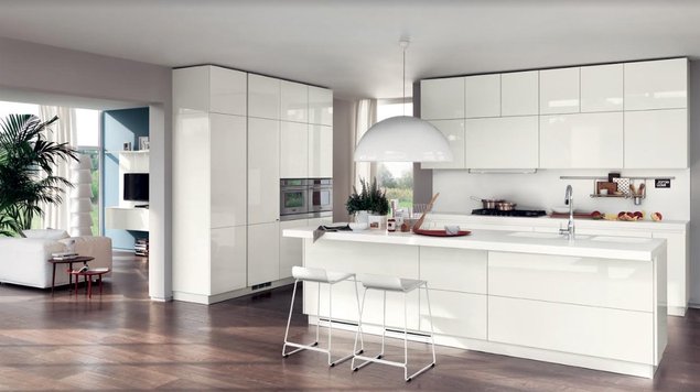 Tule vaata Liberamente kööki Scavolini Store Tallinn esindussalongis Tööstuse 47a, Tallinn. Näidisköögil on esindatud valge spoon, valge klaas ja valged kõrgläikelise kombinatsiooniga uksed.