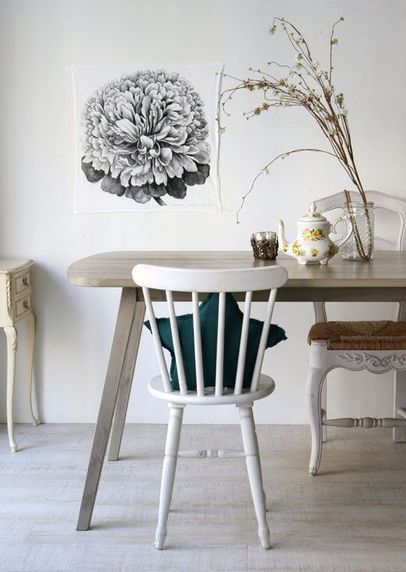 4. Vali mõni suur kunstiteos, et tuua fookus seintele. Suur kunstiteos nagu trükitud lilleõis siin fotol on suurepärane võimalus lisada ruumi isikupära ilma maalita. Või proovi seinale kinnituvat taimekasti, mis on täis lihaktaimi või värskeid ürte. Kardad, et suretad välja elavad taimed? Alati on võimalus kasutada ka kunsttaimi.