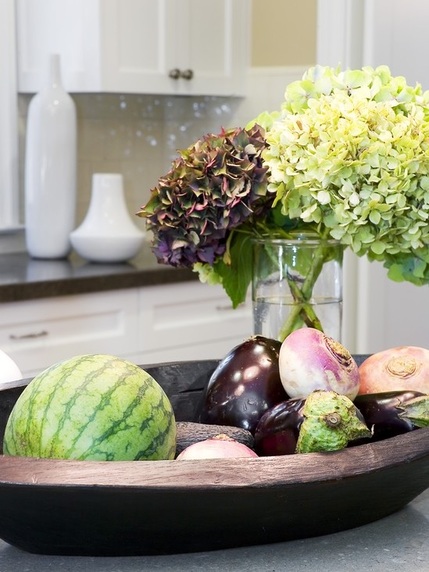 Puuviljad ja köögiviljad on kõige värvilisemad ja rikkalikumad just suvekuudel, seega miks mitte ühendada need oma kujundusega? Pane välja punased tomatid, küpsed virsikud või mingid muud värsked tooted, mis ei vaja jahutust, stiilsesse puidust kaussi või kaunisse värvilisse korvi.